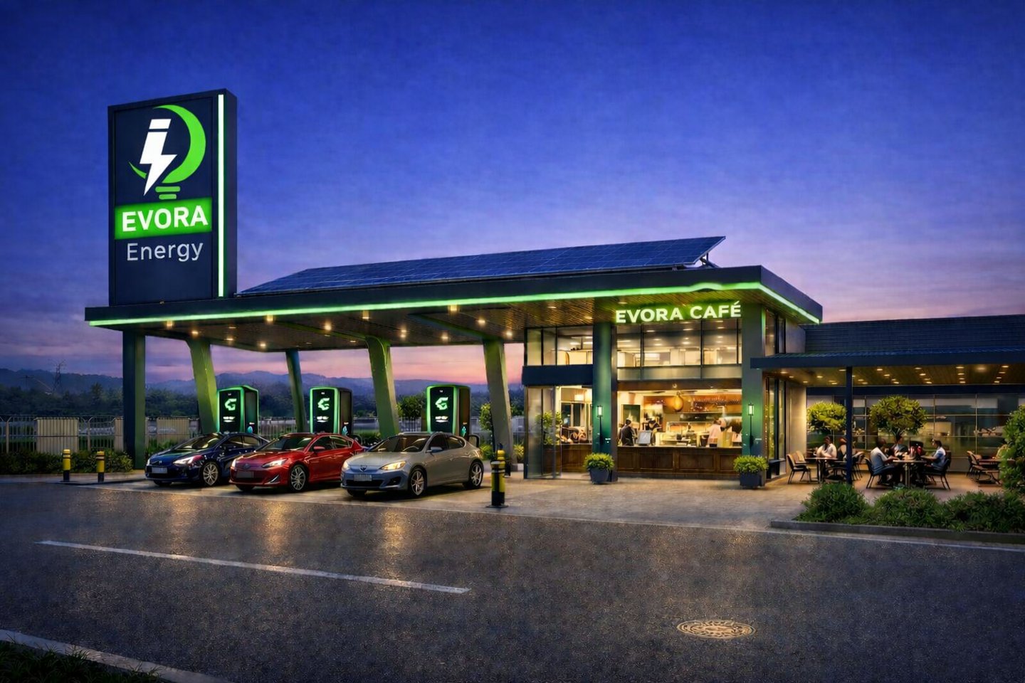 EVORA Energy collaborates with landowners, businesses, and infrastructure partners to develop strategically located electric mobility hubs that support the next generation of transportation.